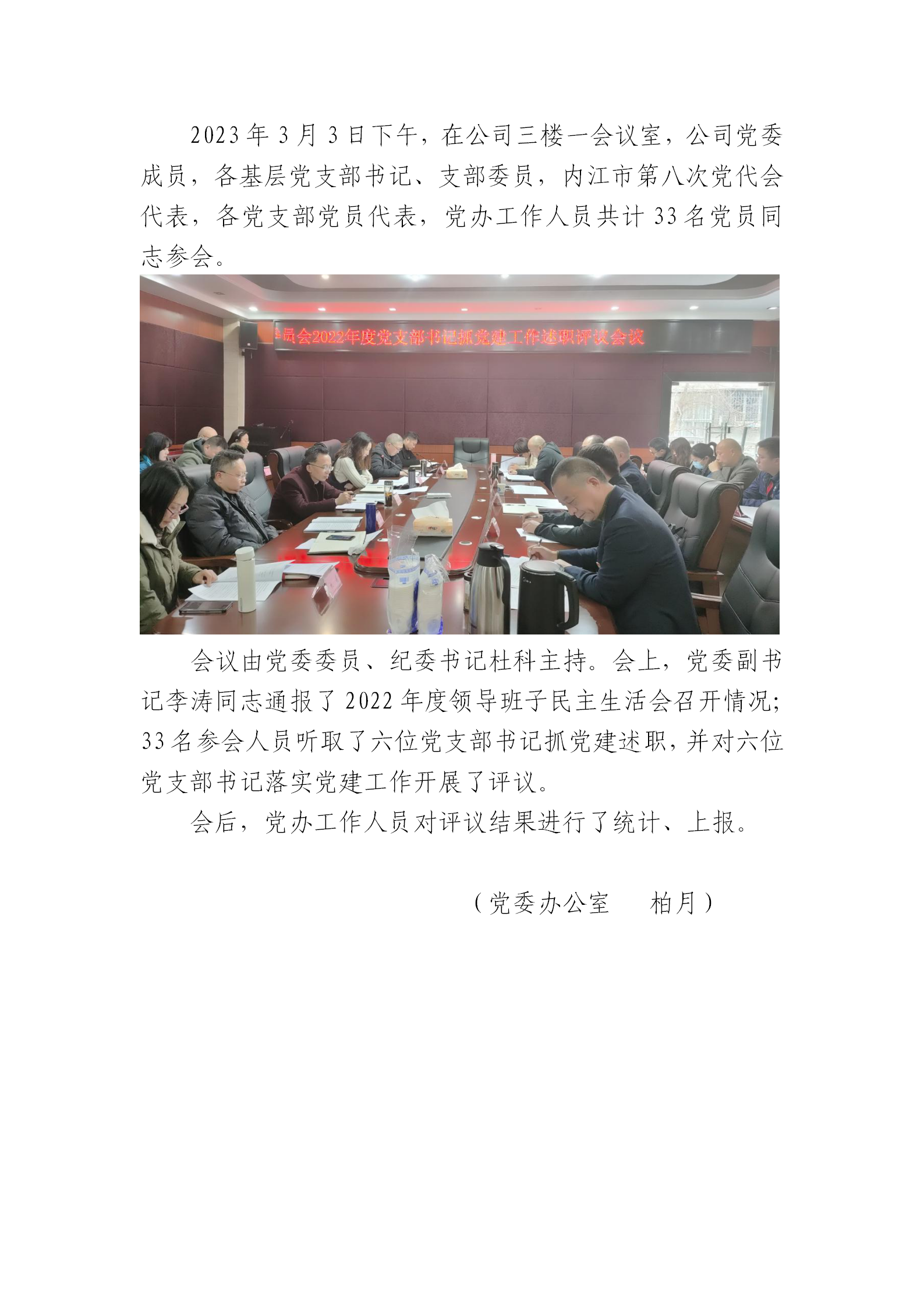 公司黨委組織召開(kāi)2022年度黨支部書(shū)記抓黨建工作述職評(píng)議會(huì)議
