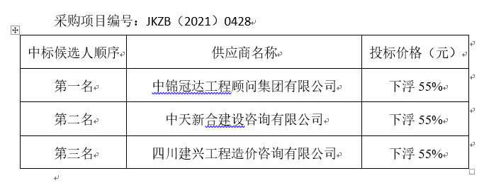 內江市應急供水搶險基地工程項目造價咨詢(編制)服務標段評標結果公示