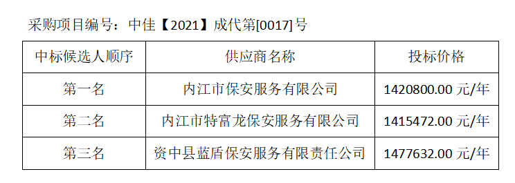 內江市水務有限責任公司保安服務項目評標結果公示