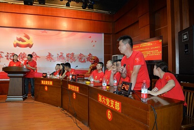 此次競賽以6個基層黨支部為單位組隊參賽,每支隊伍3名參賽隊員,且每支隊伍須有一名黨員干部帶頭參賽。競賽題目分為單(多)選題、判斷題、填空題、問答題等四種題型,主要包含了《中國共產黨黨章》、《中國共產黨支部工作條例》、《中國共產黨紀律處分條例》等方面的內容。