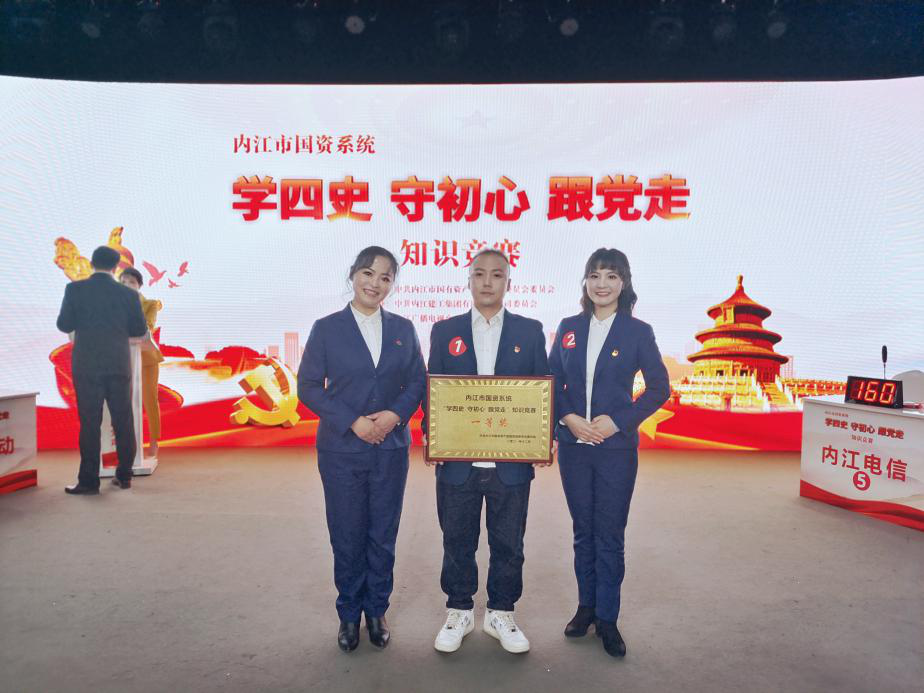 2021年12月28日下午,由中共內(nèi)江市國有資產(chǎn)監(jiān)督管理委員會委員會主辦,中共內(nèi)江建工集團有限責(zé)任公司委員會承辦的內(nèi)江市國資系統(tǒng)“學(xué)四史 守初心 跟黨走”知識競賽在內(nèi)江廣播電視臺演播大廳舉行。來自市級各企業(yè)的8支隊伍24名選手參賽,我司選派的劉梅、袁琳、熊瑞凱3名同志代表參加了此次競賽。