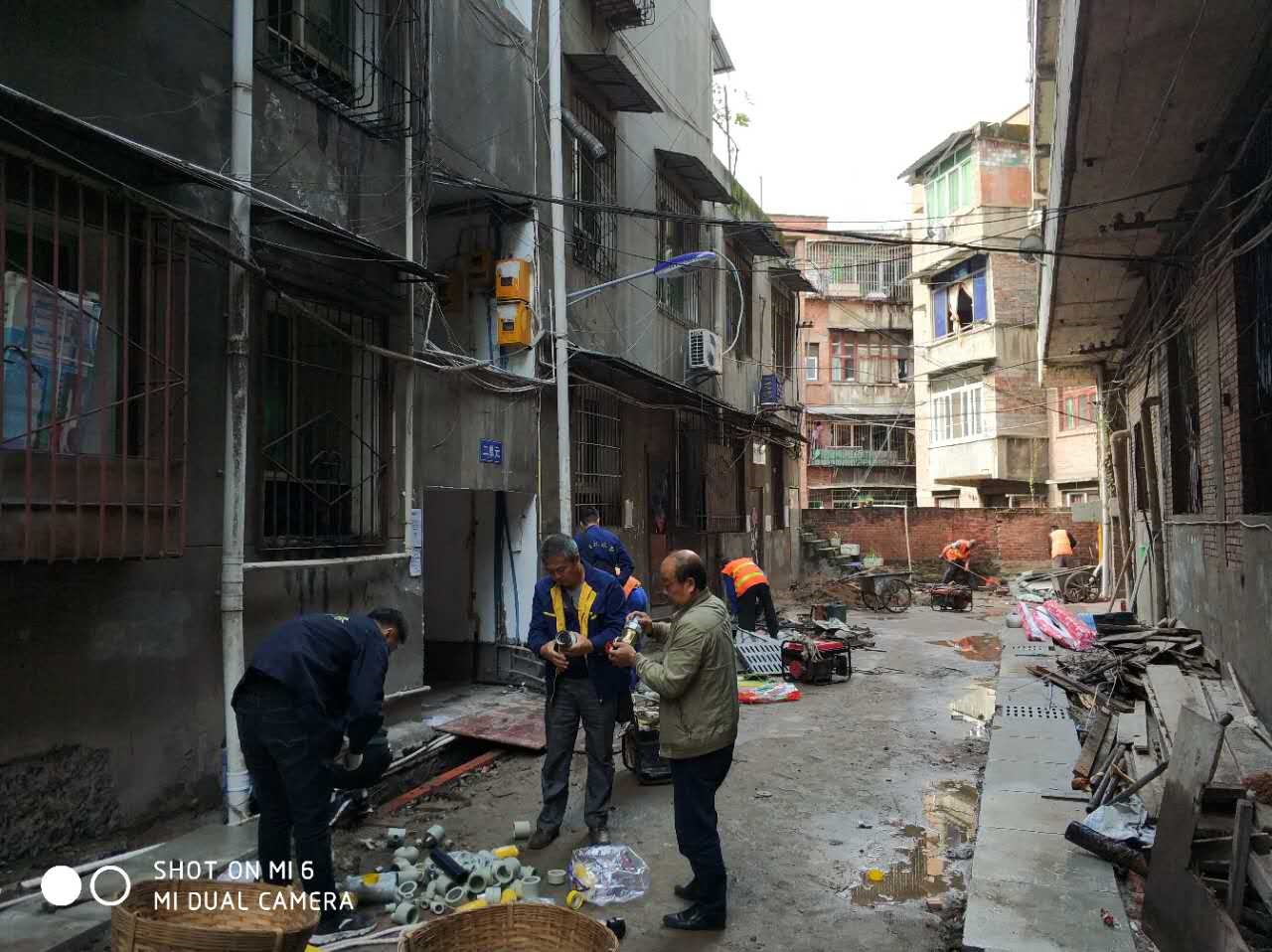 按照市中區住建局老舊院落改造計劃,國慶期間照樣施工,不休假。2017年10月5日,管網運行部在接到公司工程部統籌改造任務后,積極做好人員、材料安排。在任務急、時間短的情況下,管網運行部擔負改造任務的同志主動放棄節日休假,積極參與到新菜市場老舊院落供水管網改造工作。