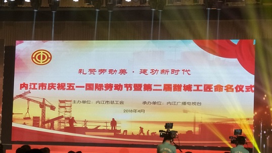 2018426日下午,由市總工會舉辦的“禮贊勞動美·建功新時代”內江市慶祝五一國際勞動節暨第二屆“甜城工匠”命名儀式在錦江國際酒店隆重舉行市委、市政府主要領導參加了本次活動。