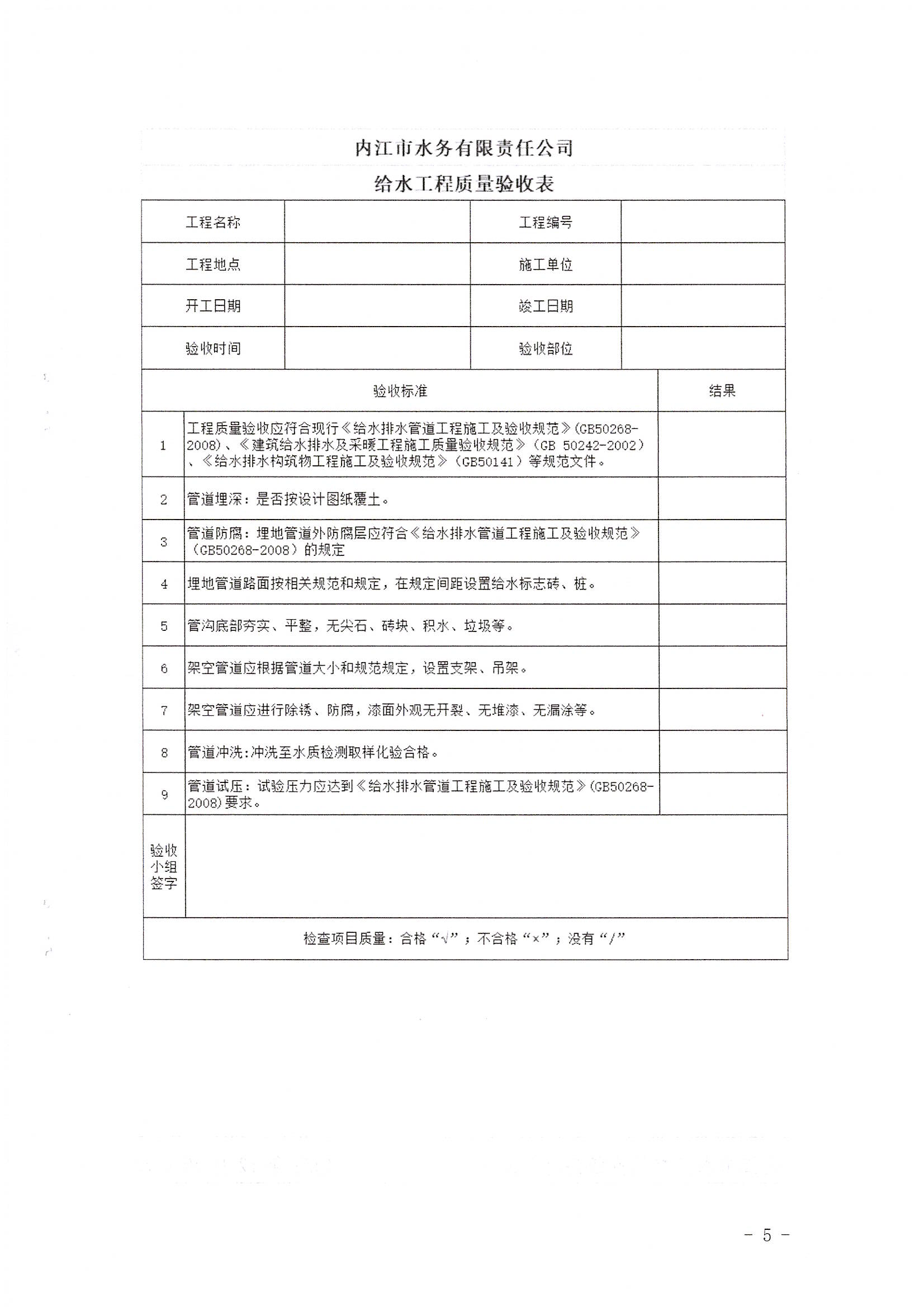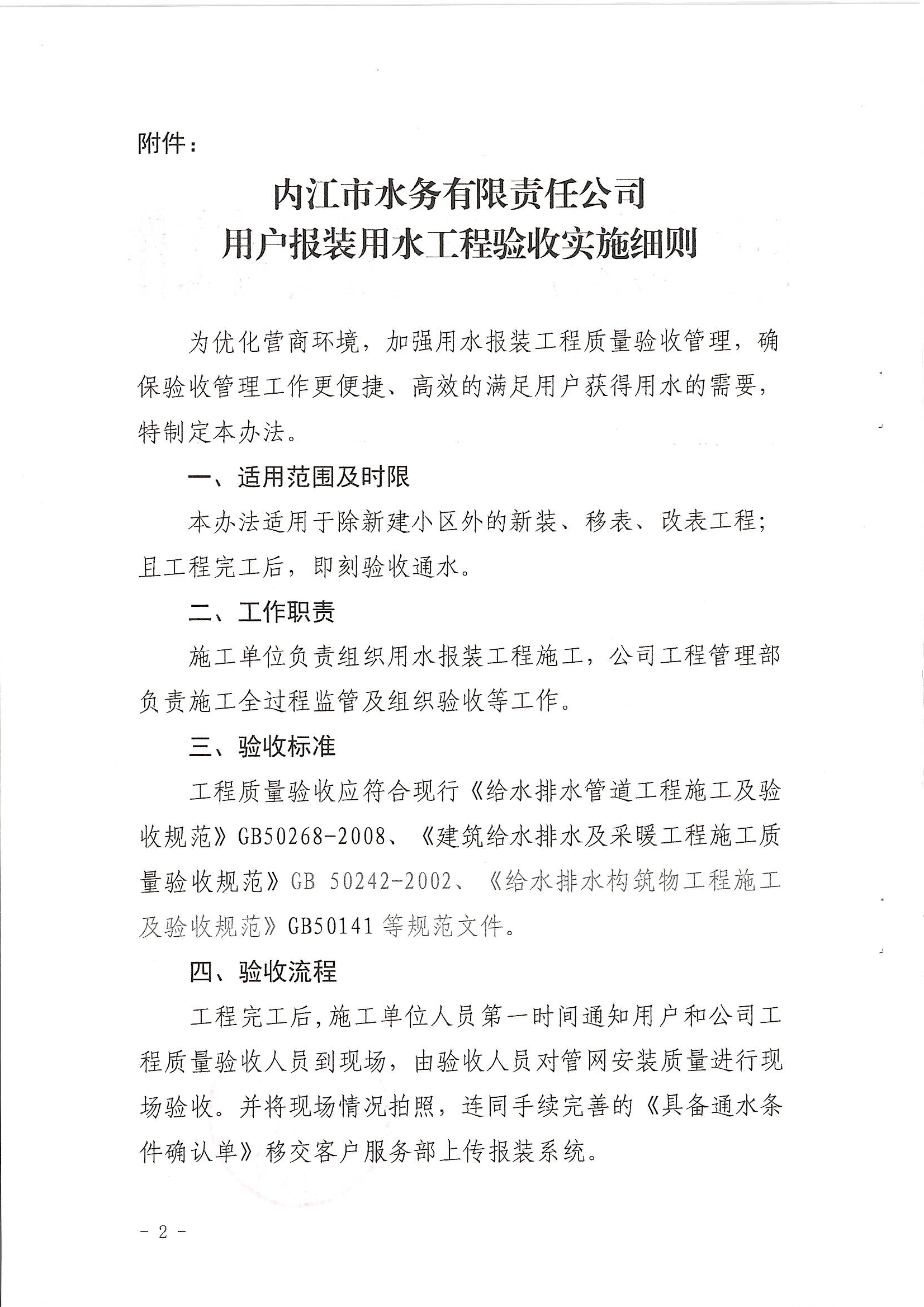 內江市水務有限責任公司用戶報裝用水工程驗收實施細則