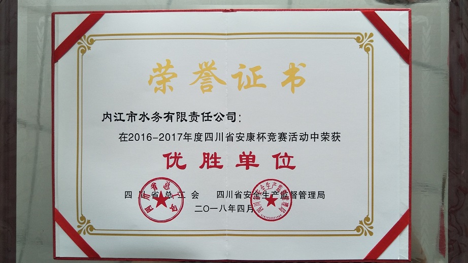 2016-2017年度四川省安康杯競賽活動中榮獲優勝單位