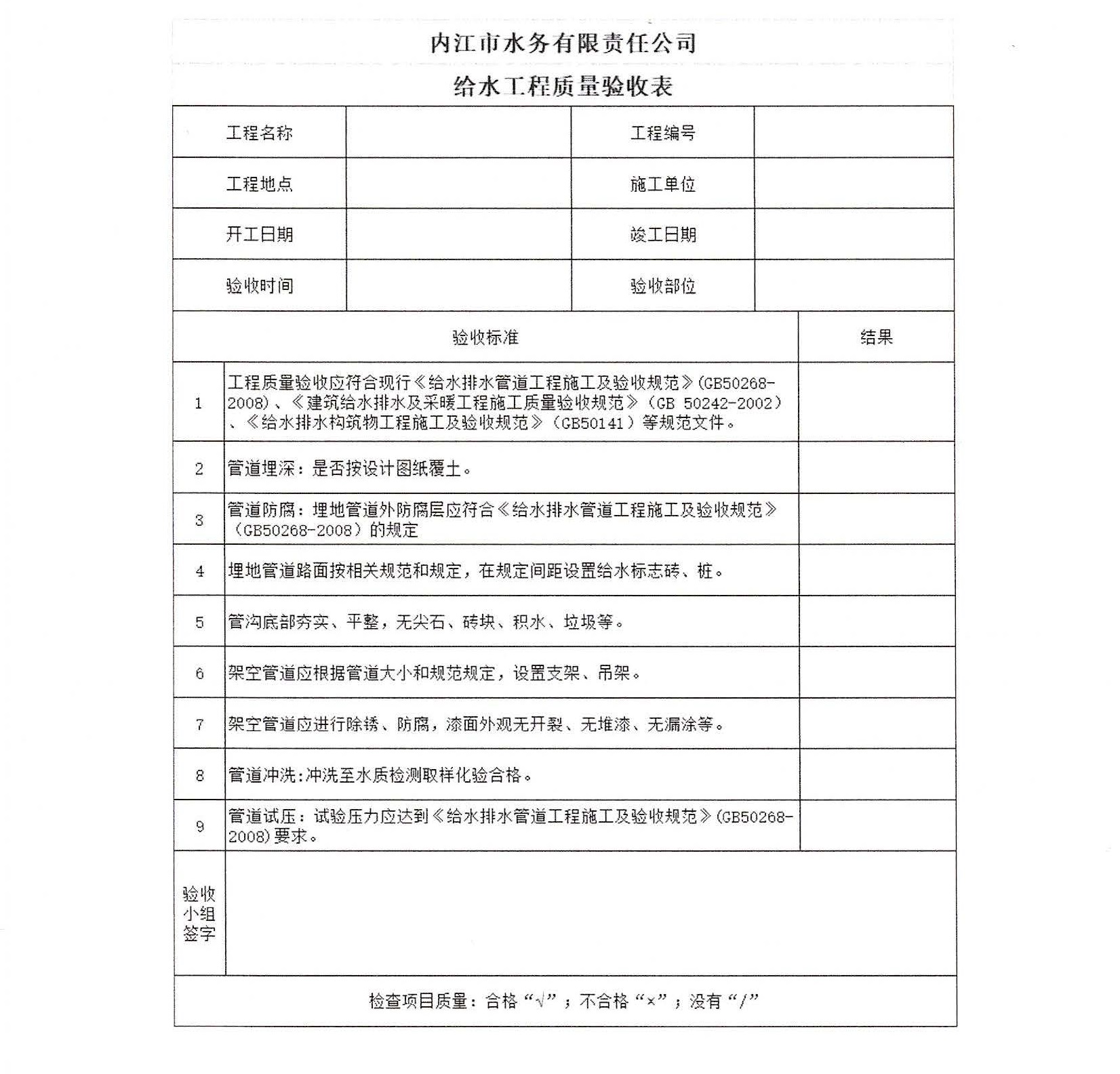 內江市水務有限責任公司用戶報裝用水工程驗收實施細則